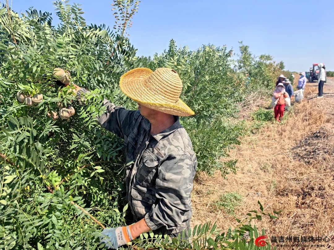 文冠果產(chǎn)業(yè)的發(fā)展還讓周邊地區(qū)農(nóng)民沾上光,每年有60多個(gè)農(nóng)戶從文冠果產(chǎn)業(yè)中獲得收益,年收入超過(guò)3萬(wàn)元。這段時(shí)間正是綠冠谷農(nóng)場(chǎng)文冠果種植基地收獲果實(shí)最忙碌的時(shí)候,每天都有30多名農(nóng)民前來(lái)務(wù)工,每人能拿到200元采摘費(fèi)。
