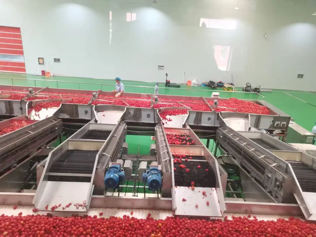眼下正值昌吉國家農(nóng)高區(qū)番茄生產(chǎn)加工黃金期,新疆新茄食品有限責任公司的11條生產(chǎn)線已全部啟動,鮮紅的番茄原料通過自動化分選系統(tǒng)源源不斷進入加工環(huán)節(jié),車間內(nèi)機器轟鳴、車流穿梭,一派熱火朝天的繁忙景象。作為當?shù)胤鸭庸さ闹髁姡髽I(yè)目前日處理番茄能力達10000噸,年產(chǎn)能穩(wěn)定在20萬噸,足以應(yīng)對旺季生產(chǎn)需求。