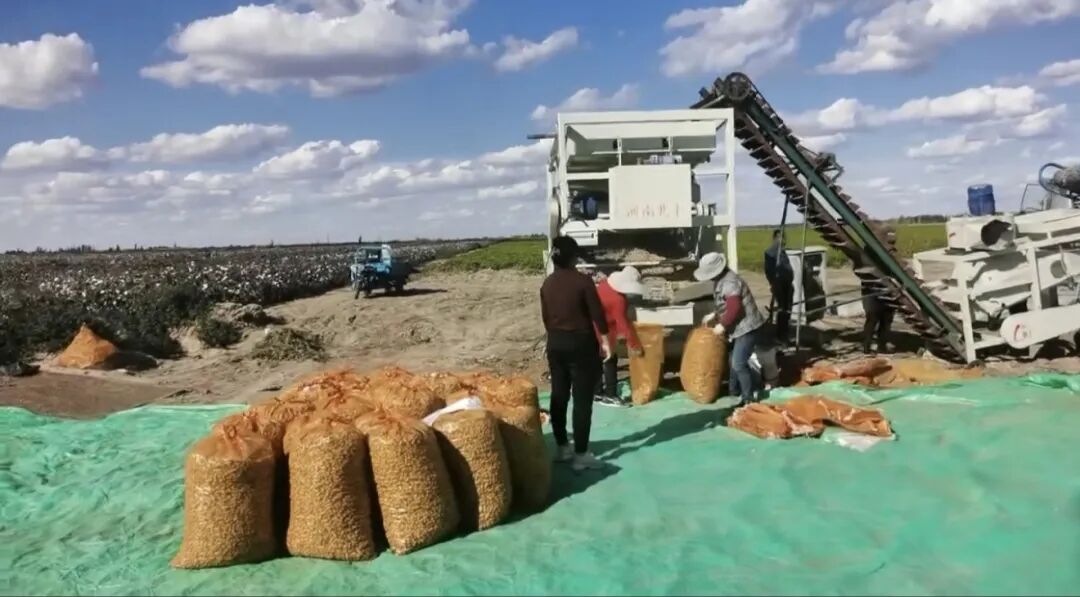 昌吉國(guó)家農(nóng)高區(qū)花生喜獲豐收 農(nóng)民忙采收