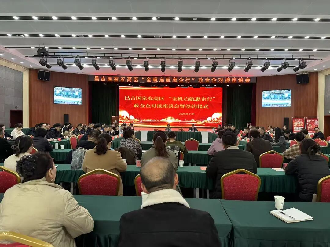 為進(jìn)一步加強(qiáng)昌吉國家農(nóng)高區(qū)、金融機(jī)構(gòu)與企業(yè)之間的溝通交流,搭建高效務(wù)實(shí)的合作平臺(tái),11月6日下午,昌吉國家農(nóng)高區(qū) “金帆啟航惠企行”政金企對(duì)接推介座談會(huì)成功召開。會(huì)上,12家企業(yè)與7家銀行現(xiàn)場簽訂戰(zhàn)略合作協(xié)議,簽約金額超10億元。