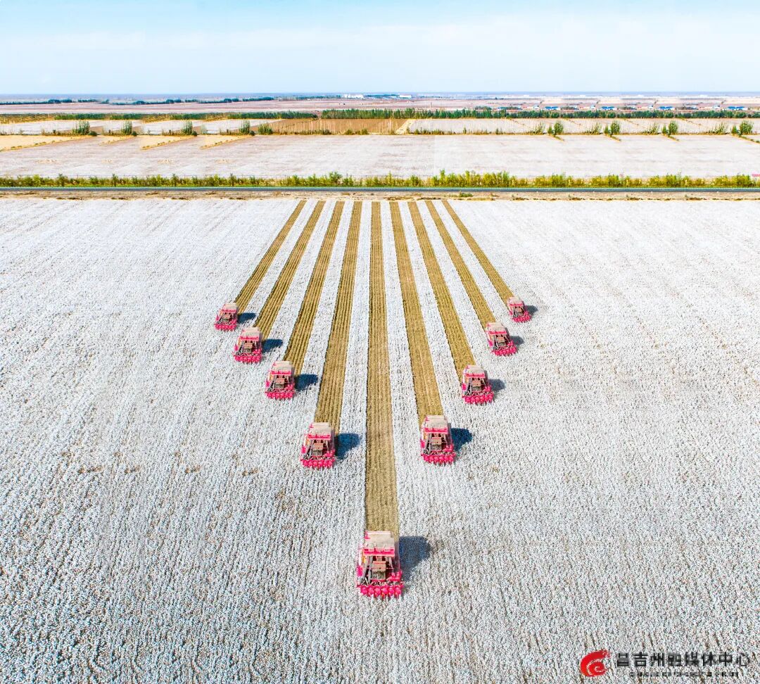 棉花豐收的背后,是先進(jìn)農(nóng)機(jī)與新型農(nóng)資的“雙輪驅(qū)動(dòng)”。近年來,昌吉國(guó)家農(nóng)高區(qū)全面鋪開北斗導(dǎo)航播種、“干播濕出”、水肥一體化、植保無人機(jī)化控等技術(shù)應(yīng)用,推動(dòng)棉花生產(chǎn)穩(wěn)步邁向標(biāo)準(zhǔn)化、智能化、高效化新階段。